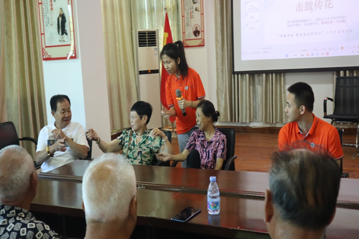 实践队成员带动老人们进行“击鼓传花”小游戏
