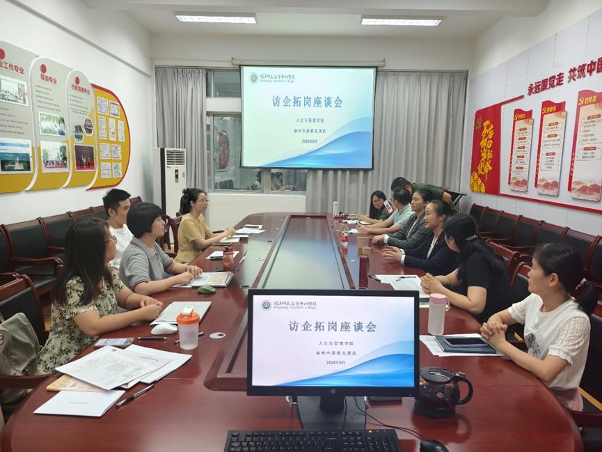 座谈会上,学院院长陈勤对福州中庚聚龙酒店人员的到访表示热烈欢迎,并重点介绍了学院的专业培养方案及实习就业需求等信息,表达了与福州中庚聚龙酒店长期开展合作的期待。洽谈会上,双方就校企合作的具体内容和形式进行了深入探讨。福州中庚聚龙酒店的人力资源部招聘经理何茜介绍了中庚集团的人才培养制度及员工关怀机制,对在中庚聚龙酒店工作过的人文毕业生、实习生的专业技能和职业素养表示肯定。校企合作项目中提供岗位主要涉及前台服务岗位、餐饮服务岗位和营销岗位等三类岗位的招聘,为学生提供就业进阶通道,助力学院人才培养。