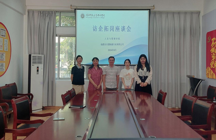 随后,福建光大国际旅行社有限公司人力经理刘颖详细介绍了光大国旅的业务范围、企业文化及人才需求,并表达了与人文与管理学院在实习实训、课程共建、师资互聘等方面的合作意向。她期待通过双方的共同努力,实现资源共享、优势互补,共同推动旅游教育事业的发展。