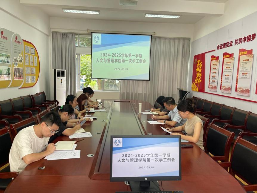 为确保新学期学生工作顺利开展,切实推进学生工作高质量发展,人文与管理学院于9月4日在3-301会议室召开2024-2025学年第一学期初辅导员工作会议。学院党总支书记王海波、副书记陈清芬及全体辅导员参加会议,会议由黄益群老师主持。