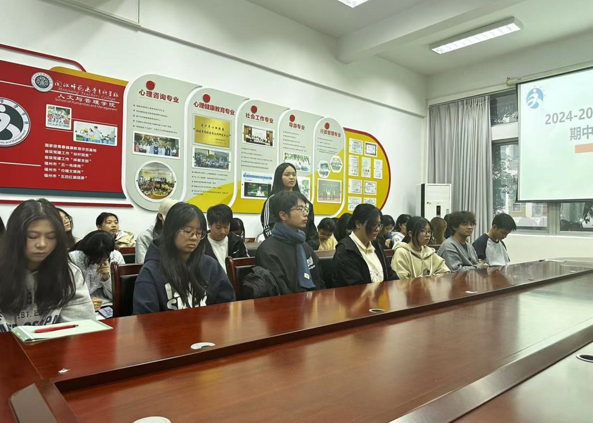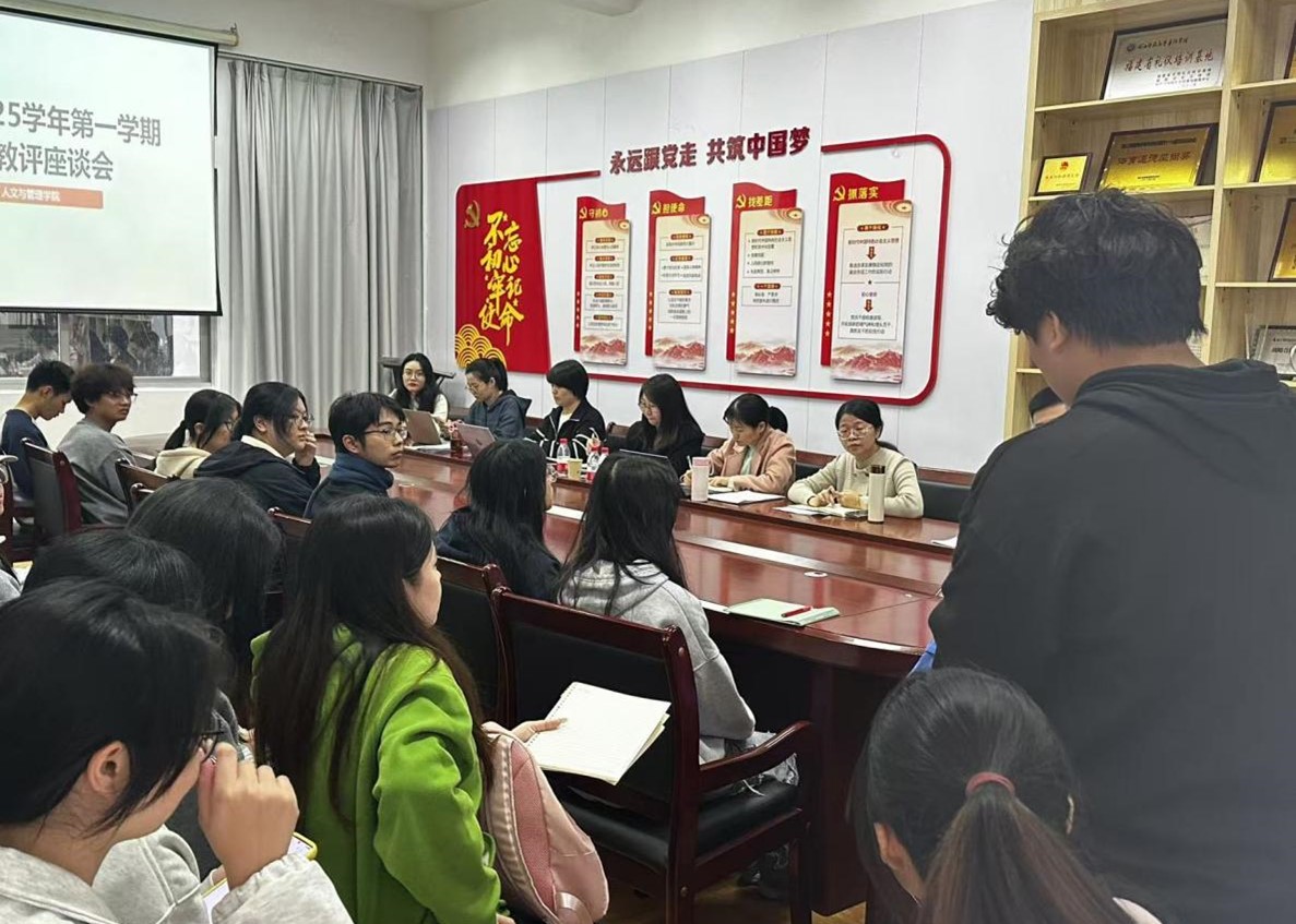 为进一步提高教学质量,增强教育教学效果,12月4日,人文与管理学院于仓山校区3号楼会议室召开第一学期期中座谈会。我院分管教学工作副院长谢姗姗、各教研室主任以及学生代表共40余人参与会议。
