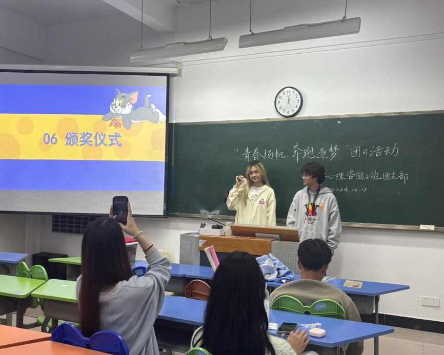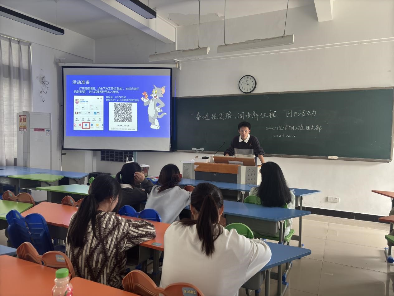 12月11日,24级心理咨询2班团支部于3-602教室开展“青春扬帆,奔跑追逐”特色团日活动,此次活动分为理论学习和户外团辅活动两个部分。团支书沈宿桐首先带领同学们学习了《习近平的七年知青岁月》,回顾习近平总书记的青春奋斗历程,从中汲取奋斗力量。理论学习后,团支部开展“猫抓老鼠”团辅活动,扮演“猫”“鼠”不同角色的同学在校园开展了激烈追逐战,同学们沉浸其中,挥洒青春汗水。奋斗是青春最亮丽的底色,青年大学生要树立起与党和人民同心同向的理想信念和价值追求,努力成为强国复兴、挺膺担当的时代新人。
