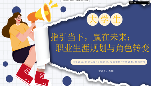 为进一步引导我院学生加强职业生涯规划,拓宽职业视野,明确职业目标,促进高质量充分就业,12月16日,人文与管理学院于线上开展学生就业能力提升专题辅导之“指引当下,赢在未来”职业生涯规划和大学生角色转变讲座。此次活动由李姗老师主讲,人文与管理学院全体学生参加。活动中,李姗老师围绕自我评估、职业认知、目标定位、实施策略、评估调整及角色转变等方面进行详细的讲解。此次讲座不仅让同学们对职业生涯规划有了更加全面和深入的认识,也帮助同学们更好地认清自我,明确职业方向,制定清晰的职业发展路径,为未来的就业积蓄力量。