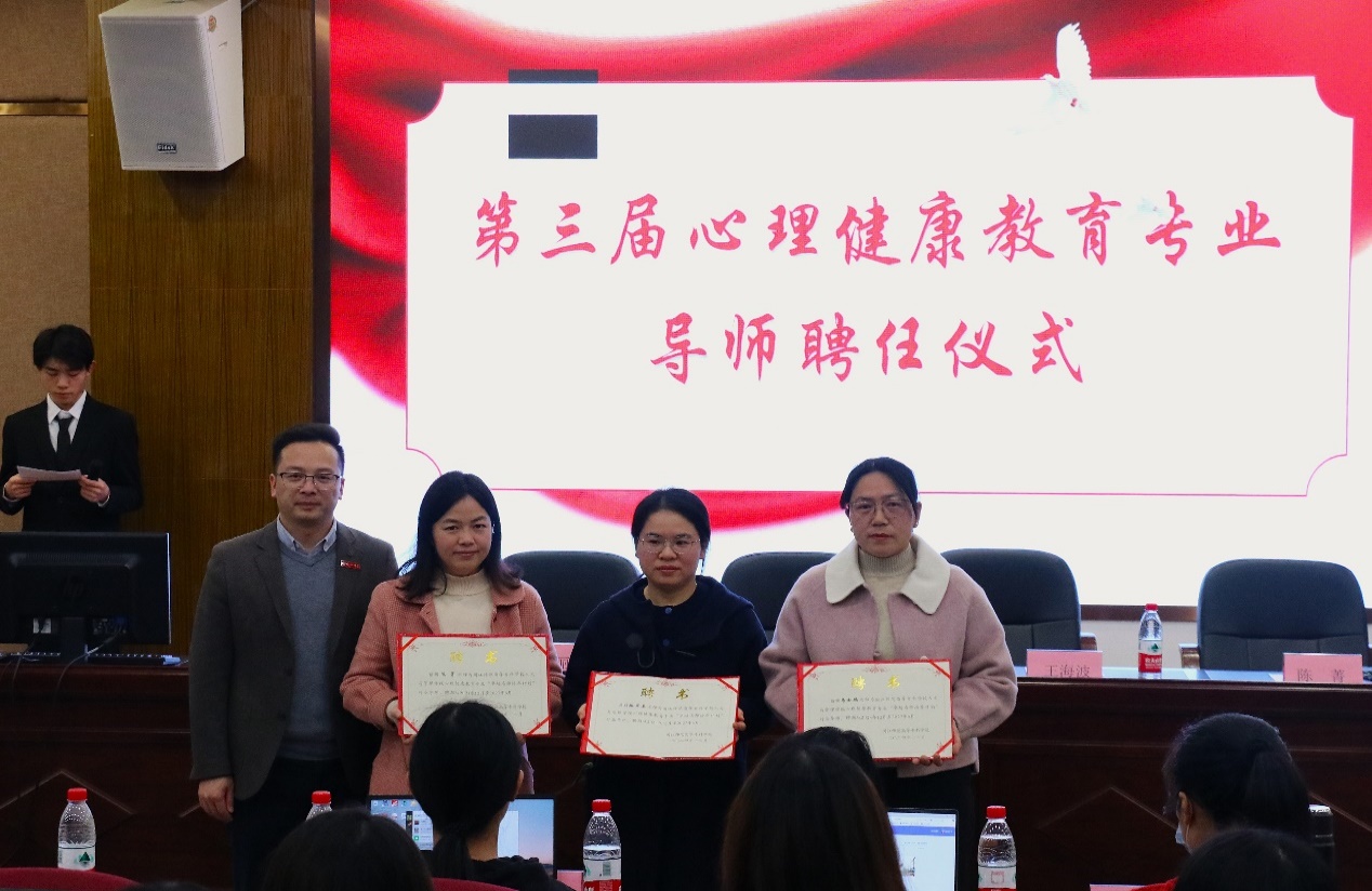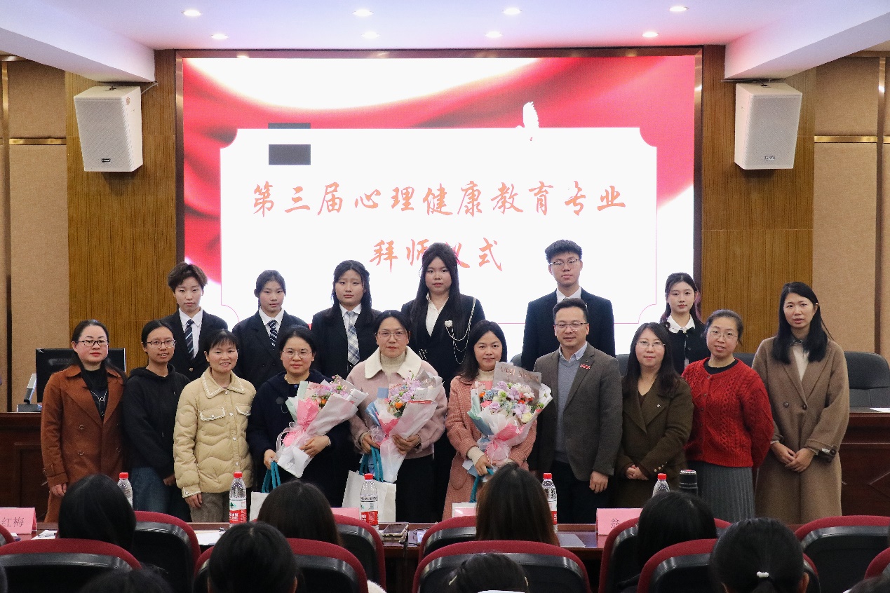 2024年12月25日下午,人文与管理学院在闽江师专仓山校区多功能厅举办第三届心理健康教育专业“卓越名师培养计划”拜师会暨导师聘任仪式。人文与管理学院书记王海波、副院长谢姗姗,心理教研室主任白丽,特邀校外育人导师——福州市钱塘小学陈菁老师、福州市麦顶小学骆翠玉老师、福州市达明小学马云鹏老师,学院心理专业老师及24级心理健康教育专业全体学生共同参与。