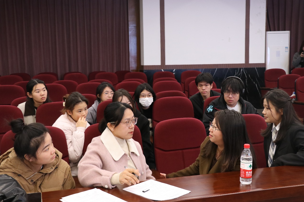 接着,24心理健康教育班林佳敏同学代表全体学生发言,向师傅们承诺,在今后的学习中一定谨遵师教,虚心求教,勤奋努力。三名小组组员代表上台给导师们献花和学院文创纪念品以表示感谢与敬意。最后,导师们和各小组成员进行深入交流,同学们积极踊跃地提出了自己的疑问和看法,各位导师为同学们进行了详细解答。