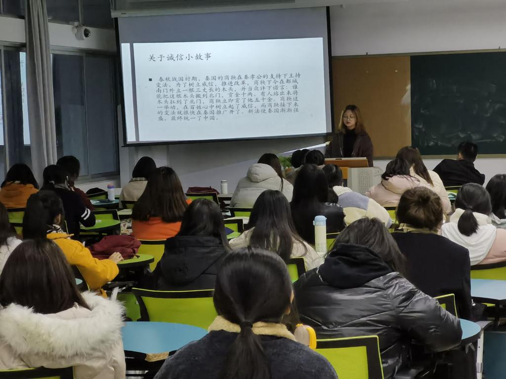 为了树立诚信意识,塑造诚信品质,弘扬诚信之风,响应学校的号召开展本次以诚信为主题的班会活动,加强同学们在学习生活中的诚信观念,使同学们充分地认识到诚信的重要性,1月7日下午17:45,20级社会工作班开展了以“做事以诚,待人以信”为主题的班会活动,此次活动由20级社会工作班班长严佳欣主讲。