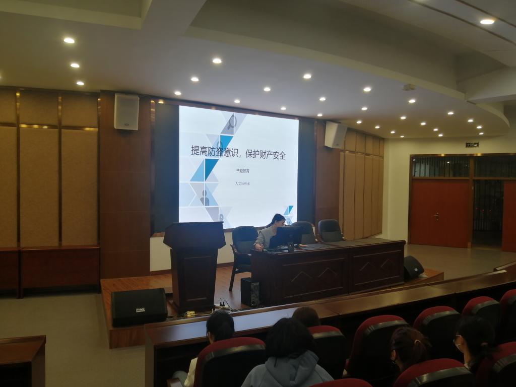 新学期的开始,为进一步加强学生们的安全防范意识,增强学生对于突发事件的处理能力,保护自身的利益不受侵害,防范于未然。推动平安、和谐的校园生活。3月14日晚,人文社科系19级辅导员黄益群在学术报告厅举行关于“忠诚铸平安,安全细防范”专题教育。