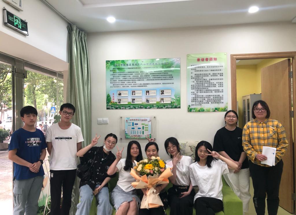 当天上午,见习指导老师陈姗老师与8名实习队成员进行了简短的早会,对实习队两周的见习表示感谢,以及对心理咨询教室岗位的就业情况进行分析探讨。随后,大赢家体育app下载叶佳媚老师前往鼓楼第一中心小学对该实习队的见习工作进行现场观看与指导,并与实习队成员对为期两周的见习生活展开讨论。首先,叶佳媚老师与实习队成员于鼓一小门前进行留影,紧接着,共同来到实习队工作与休息的鼓楼区未成年人辅导站,实习队成员向叶佳媚老师介绍辅导站内的放松室、谈心室、宣泄室以及沙盘室等区域设置。接下来开展了一个小型总结会议各个成员依次向老师汇报这两周见习中的收获以及自身不足之处,佳媚老师还询问了各个成员未来的发展规划,为成员们的就业方向提出建设性的意见。下午,实习队成员将工作了两周的团辅教室进行打扫还原,在整理过程中,成员们纷纷对两周的实习表达自己的感想,虽然只有短短两周,但与鼓一小的老师同学结下了深厚的感情,组员们在当天临近结束之际,向见习指导老师献上花束,并于陈姗老师于辅导站内合照,留下珍贵合影,成员们纷纷向陈姗老师表达两周的教导之情并与老师告别。