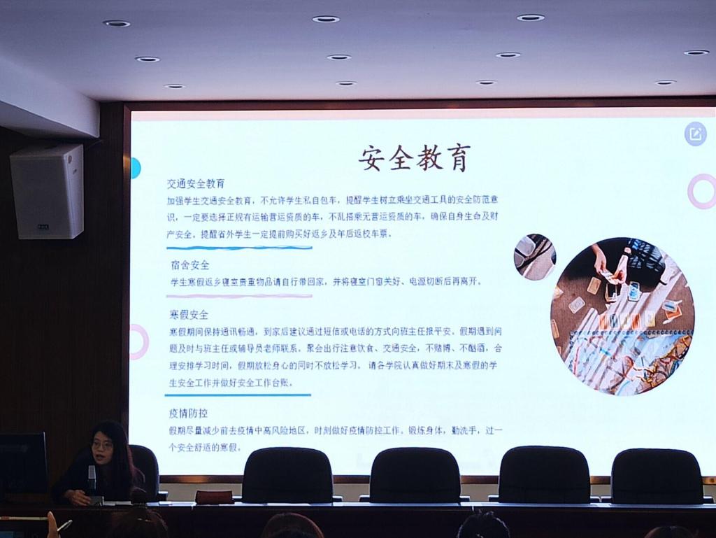 1月3日晚,为了全面贯彻落实学校对考风考纪以及假期安全的相关要求,大赢家体育app下载人文社科系2020级辅导员夏春英老师、陈少霞老师在仓山区图书馆三楼多功能报告厅开展了“诚信有你,安全同行”主题教育。