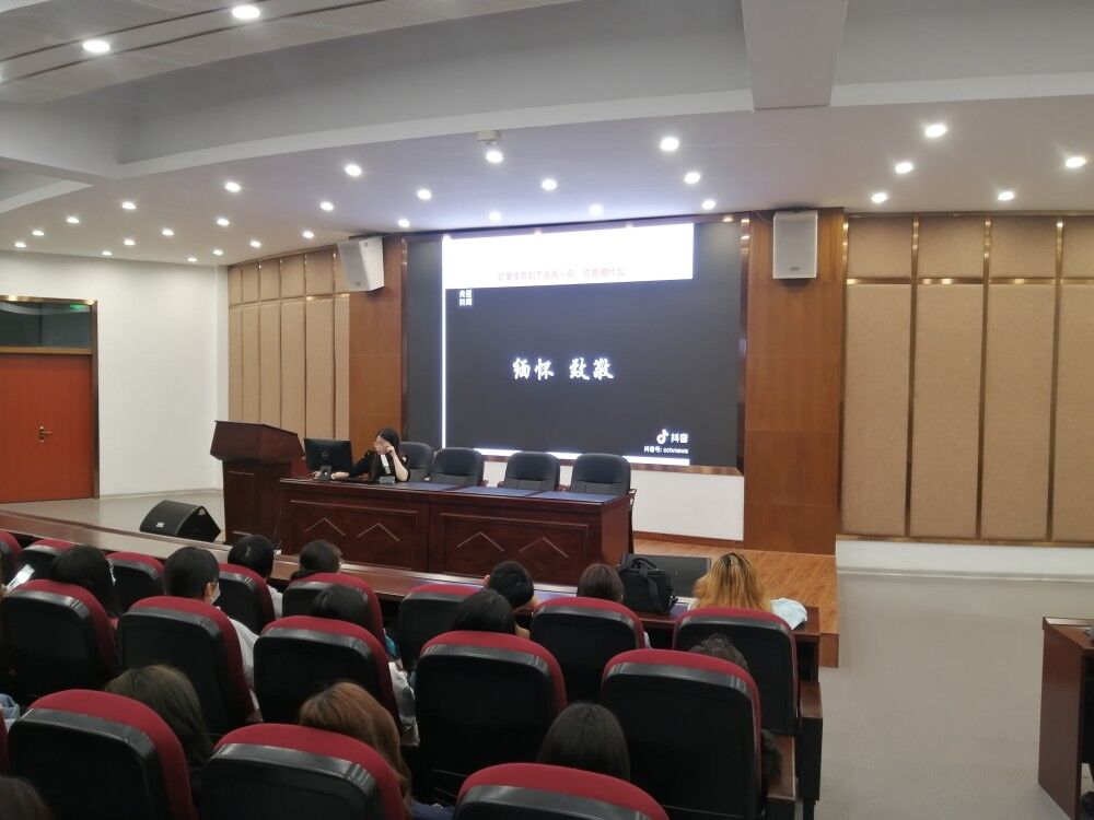 主题教育的起初由人文社科系19级辅导员黄益群讲述了清明节的由来,其次开始叙述中国近代史上的革命烈士的英雄事迹,加深学生对于革命先烈的敬佩与感触,最后引用“如果生命只剩下最后一刻”的视频引发同学们对于英雄事迹的感慨。进一步加深学生的爱国情怀与远大抱负的思想信念。