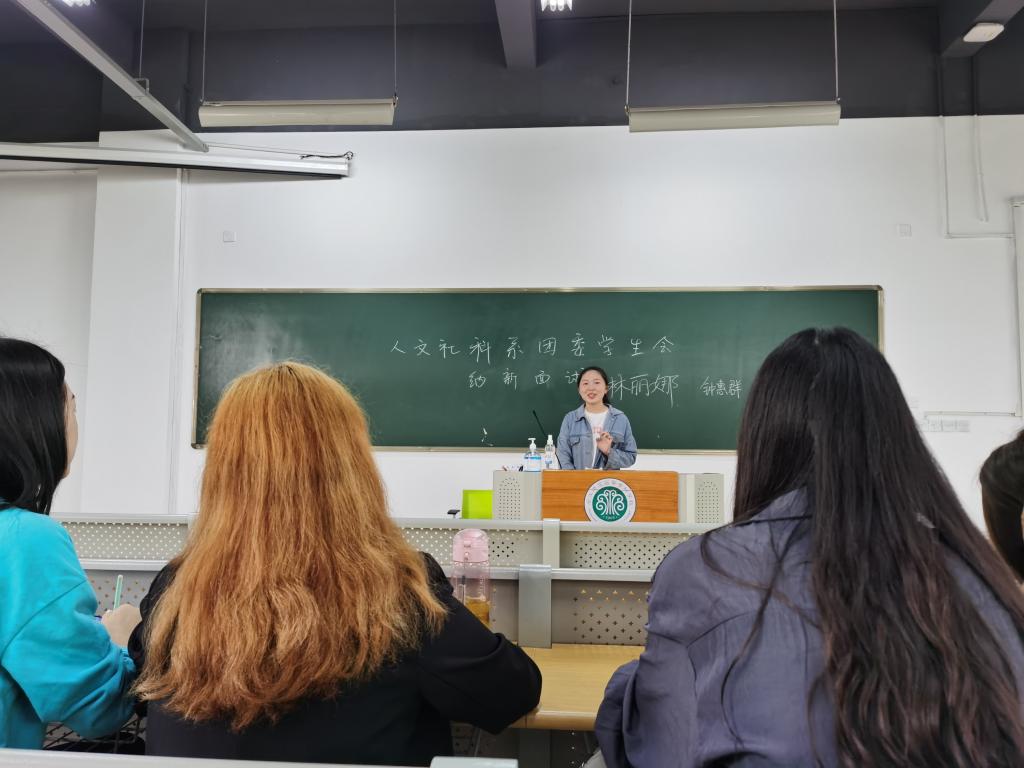 人文社科系团委学生会分别有办公室、组织部、督导部、实践部、宿管部、文体部、编辑部、记者部、摄影部、青工部、生活部、学习部等12个部门,人文社科系第八届团委学生会的纳新活动,经过20级新生个人申请、系团委学生会简历筛选等各个环节,最终确定进入面试名单。而在面试过程中,先由20级新生做一分钟简短的自我介绍,随后具体介绍自己加入某个部门原因进行解说,再由益群老师或懿蛟老师提问,以及相应部门部长或副部长进行针对性提问。