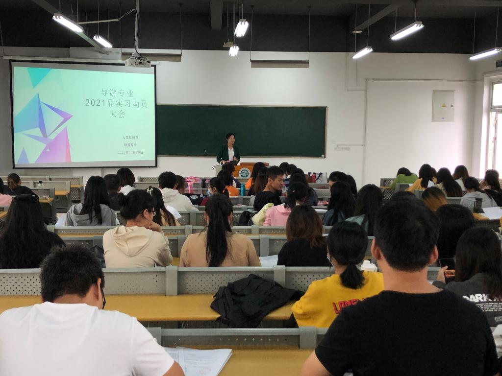 为保障2021届学生实习工作的顺利开展和完成,根据学校和系部统一部署,2020年10月29日,人文社科系导游专业召开“2021届学生实习动员大会”,会议由人文社科系系副主任刘少艾主持,导游教研室主任谢颖、专业教师梁虹出席会议,参加会议的是2021届毕业班全体学生。