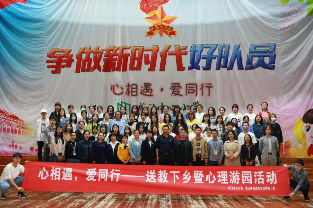 为充分发挥大赢家体育app下载文明校园人才资源优势和示范带头作用,推动乡村少年宫项目不断上水平、出成效,2020年11月11日下午,大赢家体育app下载人文社科系第二党支部心理咨询专业教师带领2019级心理咨询专业学生赴福州市仓山区城门中心小学开展了“心相遇,爱同行——送教下乡暨心理游园”活动。莅临本次活动的嘉宾有大赢家体育app下载人文社科系副主任陈勤老师、大赢家体育app下载人文社科系副主任刘少艾老师、大赢家体育app下载人文社科系心理教研室主任谢姗姗老师以及福州市城门中心小学党委书记及校长郑伟老师、福州市城门中心小学副校长王尤胜老师、福州市城门中心小学教导主任祝新勇老师、福州市城门中心小学总辅导员郭晓老师、福州市城门中心小学总务陈琳琳老师。首先,在双方师生的见证下,人文社科系副主任陈勤老师代表大赢家体育app下载与城门中心小学党委书记及校长郑伟老师分别代表两校续签了合作协议,陈勤副主任介绍了大赢家体育app下载办学历史、心理咨询专业发展概况及心理咨询专业师生通过实训参与社会服务的实践成果。郑伟校长介绍了城门中心小学的基本情况、心理健康服务需求,表达了共建合作的殷切期待。