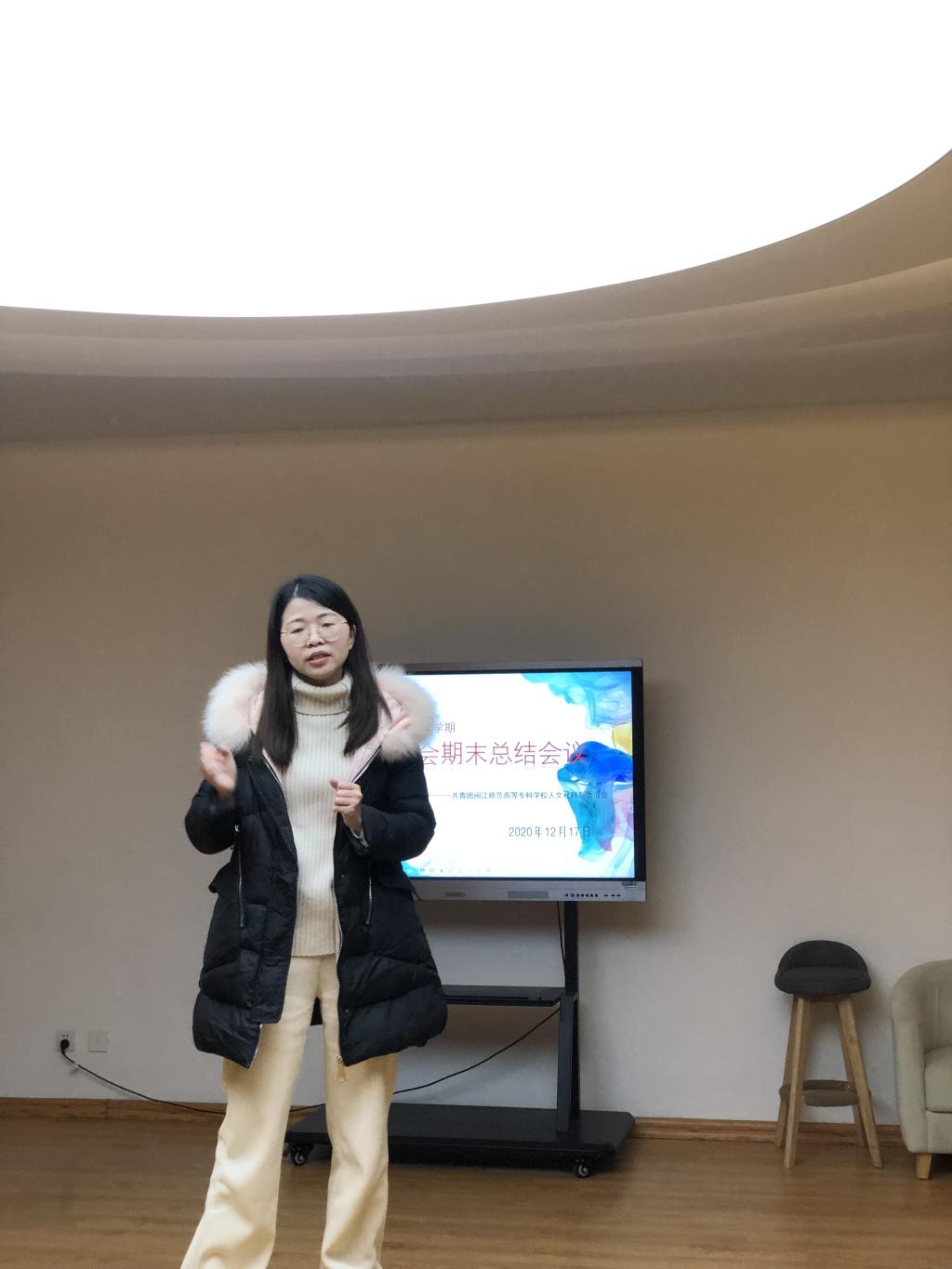 12月16日,人文社科系团委学生会在3号楼305星空演讲室召开一次2020—2021学年第一学期期末总结会议。本次会议由人文社科系团委书记黄益群主持,团委副书记林惠婷和学生会主席陈堆苗、主席团成员以及各部门部长副部长全体参加。