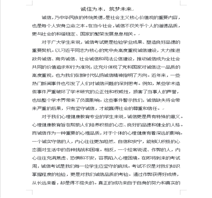 本次“以诚铸魂,以信树风”主题征文活动圆满完成,通过本次活动的开展,不仅让同学们更深入地理解和体会诚信的重要性,充分展现我院学子积极进取的精神风貌,也促进“内化于心,外化于行”的诚信考风学风建设,实现诚信教育广覆盖,共同构建一个公正、和谐的校园环境。