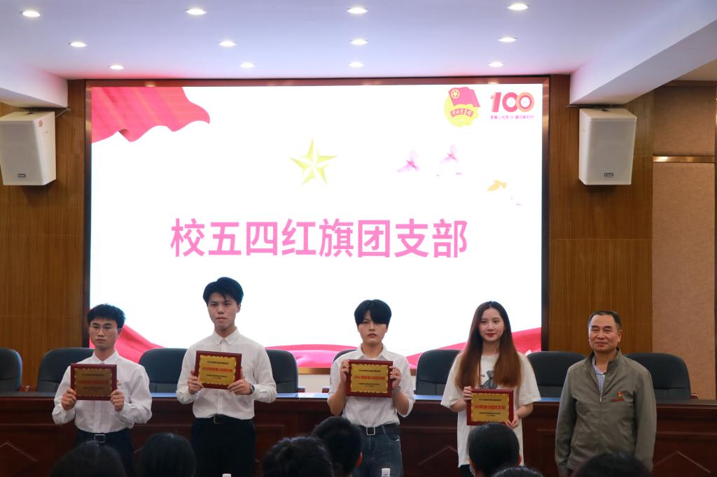 本次大会采用腾讯会议连接仓山、福清两校区,以线上线下相结合的形式展开。大会在庄严的国歌声中拉开序幕。林朝阳书记首先发表致辞,他向全体团员青年致以节日的问候,肯定了表彰大会的重要意义,并对同学们提出希望:青少年应以习近平新时代中国特色社会主义思想为指导,以理想信念为核心,丰富校园文化生活,用实际行动诠释五四精神。随后,大会进行四人朗诵、观看五四宣传片环节。会上,院团委书记黄益群带领在场全体新老团员宣读入团誓词,与会领导老师分别为2021年度荣获校五四红旗团支部、校优秀共青团员、校第二课堂标兵的先进集体代表和学生代表进行颁奖。