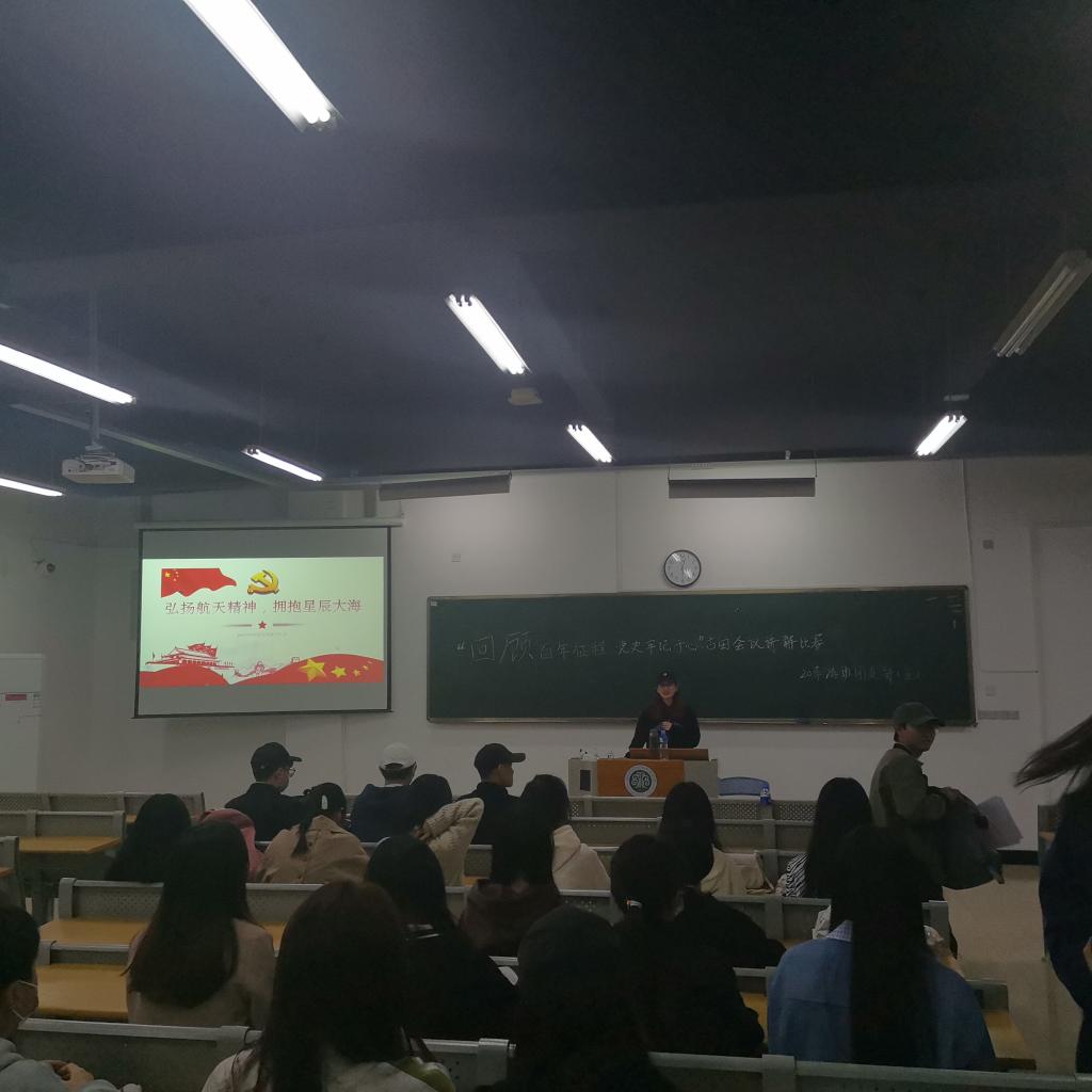 本次团日活动首先由班级组织委员以点名的形式进行签到。其次同学们在文娱委员的带领下齐唱了团歌。紧接着团员们观看了关于航天精神的相关视频,了解了航天员拼搏奋斗的励志故事,从“两弹一星”到载人航天,从探月工程到火星探测,中国航天人的始终不断朝着科技强国和航天强国的目标前进,激发了团员们的爱国情怀和民族自豪感。随后团支书组织同学们进行以航天精神为主题的知识竞赛,让大家对平时涉猎不多的航空领域有了更多的了解。最后,由组织委员点名签退,本次活动完美落幕。
