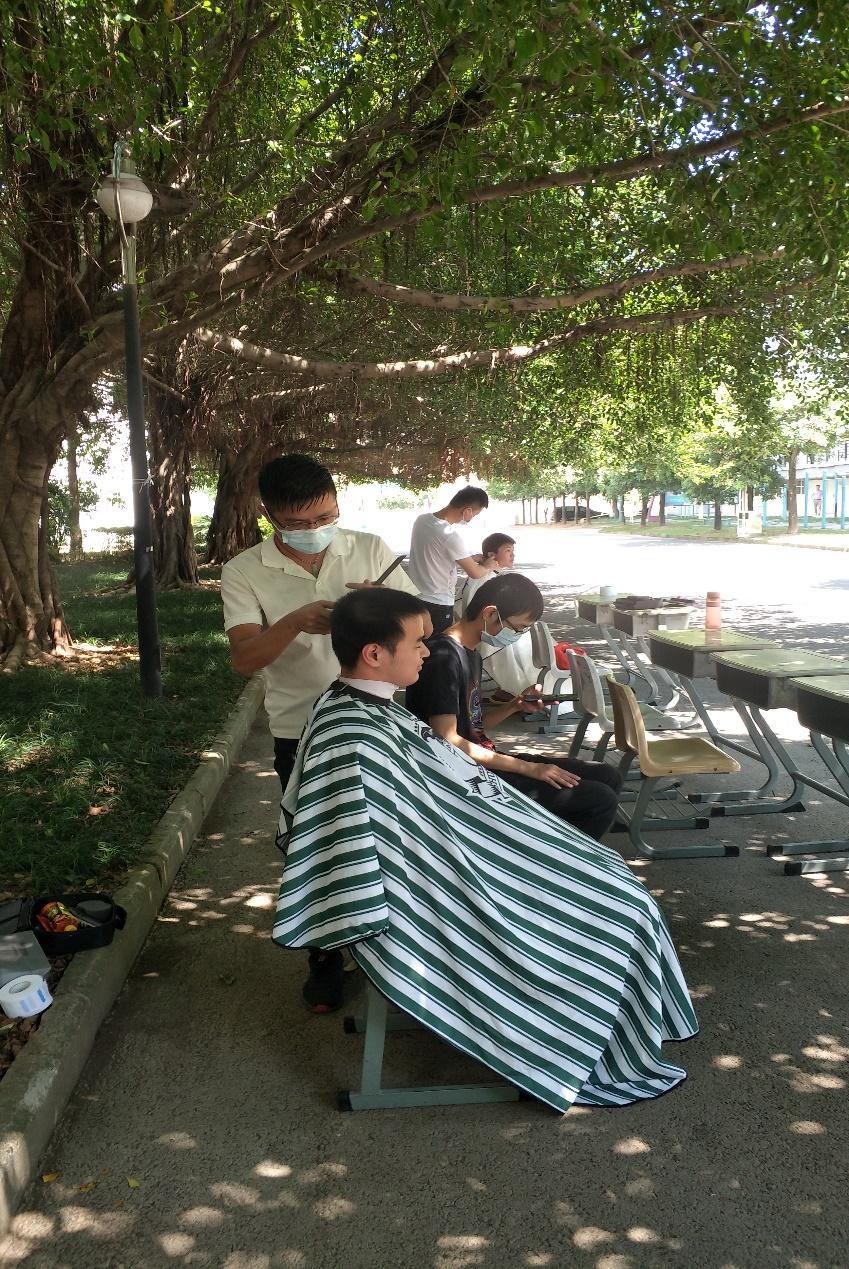 为了解决疫情期间学生的实际生活需求,9月29日下午,大赢家体育app下载学生处联合匠心美发专业理发师于旗山校区实训楼背面、靠近操场的榕树绿荫处开展公益理发活动。学生处张信容处长和郭静静副处长在公益理发现场与学生进行亲切交谈。
