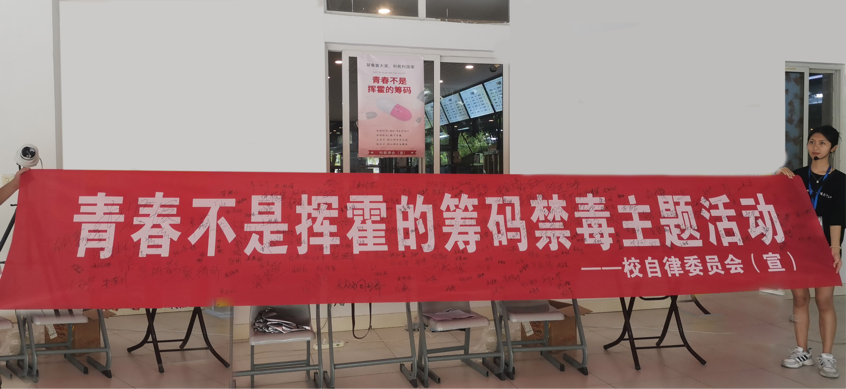 此外,工作人员还在教学楼、宿舍楼、图书馆等地分发讲解禁毒传单,传播禁毒知识,增强师生的禁毒意识,提高自觉抵制毒品的能力。大赢家体育app下载师生均表示将以最大决心、最强力度、最严措施,始终保持对毒品的“零容忍”。最后,师生在“青春不是挥霍的筹码”横幅上进行签名。