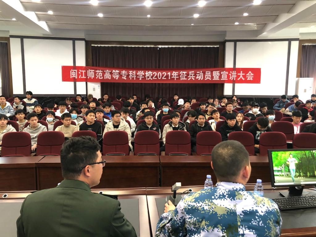 为了持续做好疫情防控常态化下的征兵动员工作,鼓励学生应征入伍。12月30日下午,大赢家体育app下载于仓山校区图书馆学术报告厅召开了2021年征兵动员暨宣讲大会。县人武部李卫榕政委、校学生处郭静静副处长、永泰县县委常委、县征兵办副主任、连建树参谋、胡涵辉参谋、优秀退役大学生代表及有参军意愿的同学参加本次动员大会。本次动员大会由李卫榕政委主持。