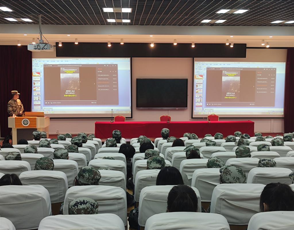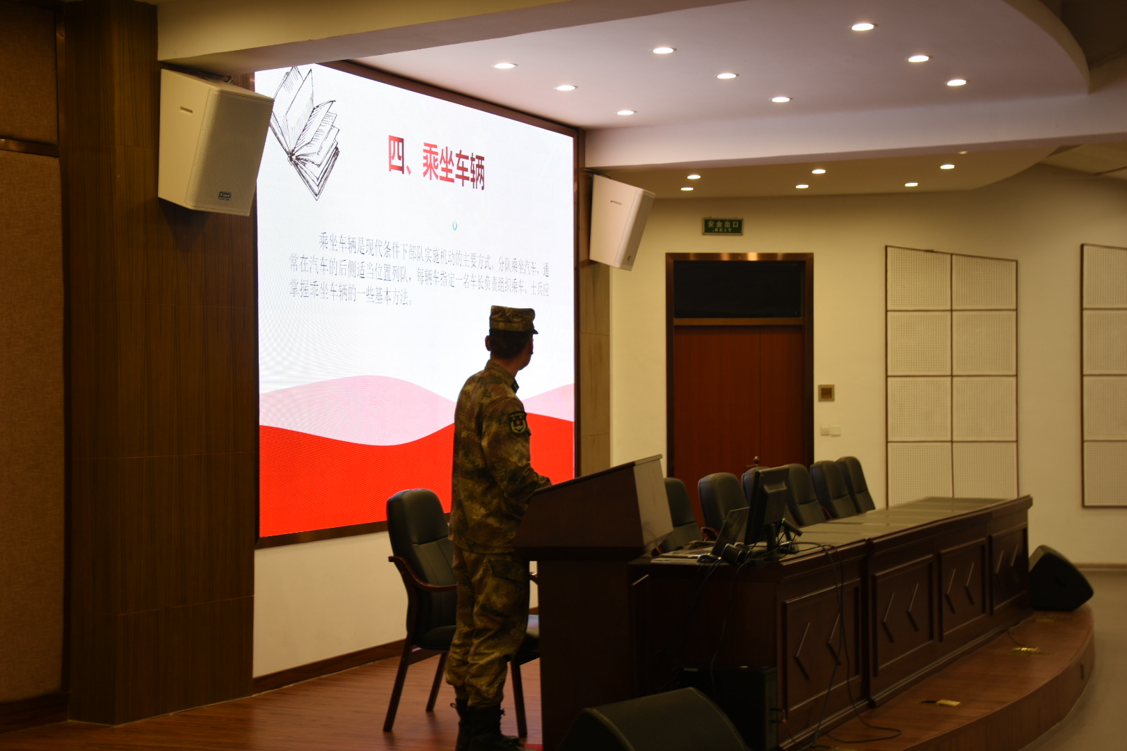 在讲座中,朱昌军排长通过两段视频及“巴巴雷萨”计划向同学们展示了“战备”一词随历史变化赋予时代的意义,并指出“战备”是生命线,是军人具备的基本素质。随后,朱昌军排长向同学们详细解读了“战备规定”、“三分四定”、“紧急集合”“徒步行军”“乘坐车辆”等一系列重要内容,让学生对国防教育有了更深的理解,增强全体学生的国防意识。他指出,国防是国家生存与发展的安全保障,是国家独立自主的前提,是国家繁荣富强的重要条件。最后,朱昌军排长号召同学们从内心焕发勿忘国耻、强我国防的爱国热情,为实现中华民族伟大复兴的中国梦贡献青春力量。