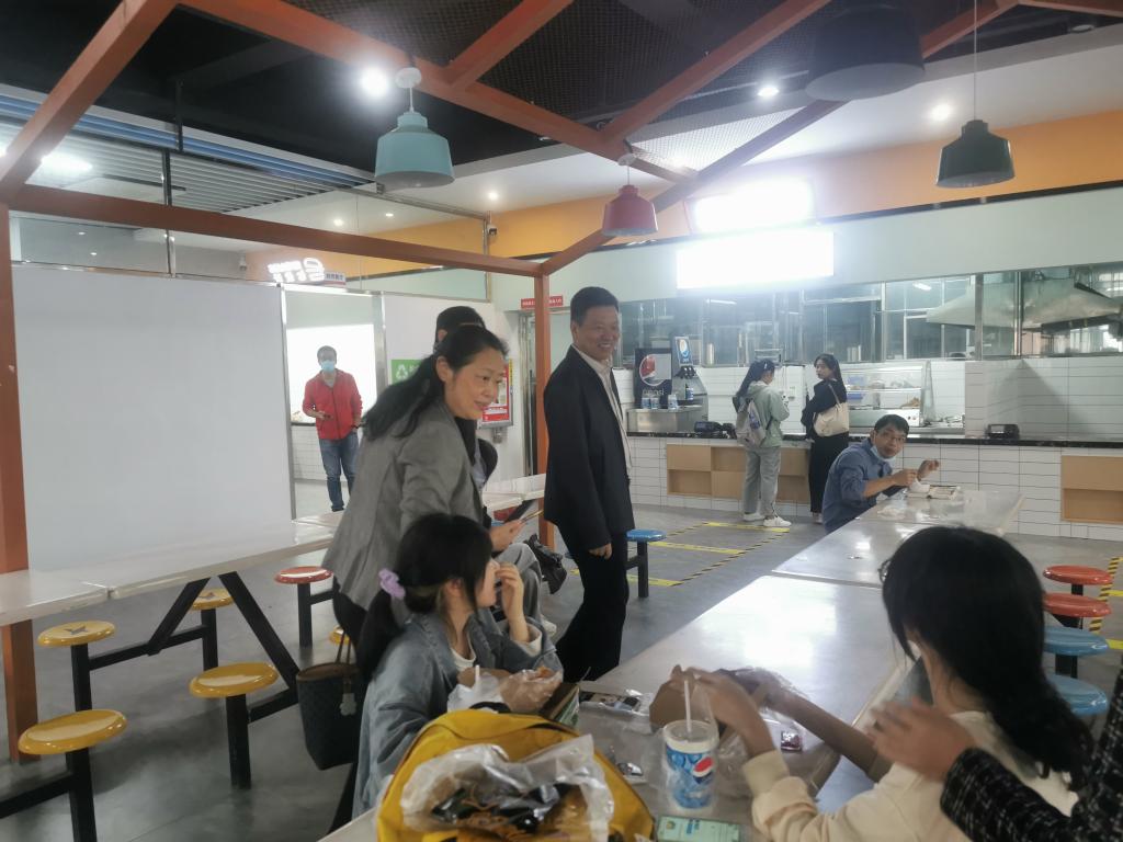 会后,陈荣生书记、林旻副校长一行到学生食堂、学生活动中心、创业园等进行了实地考察。