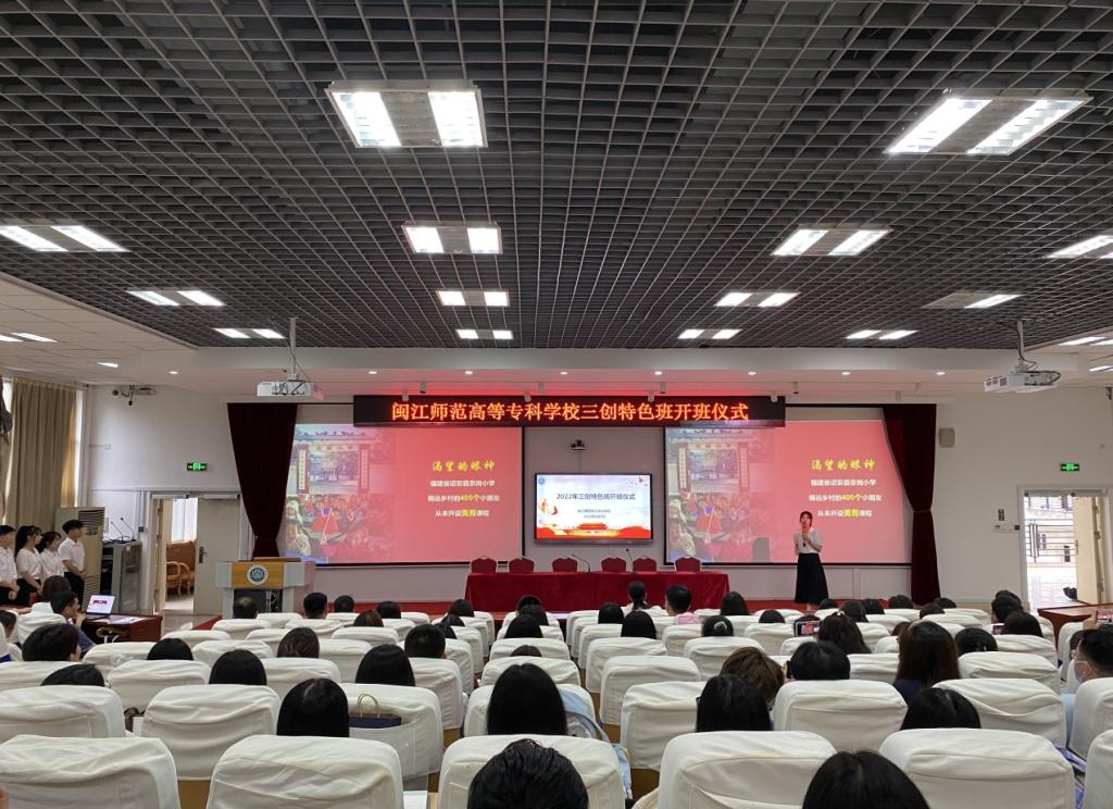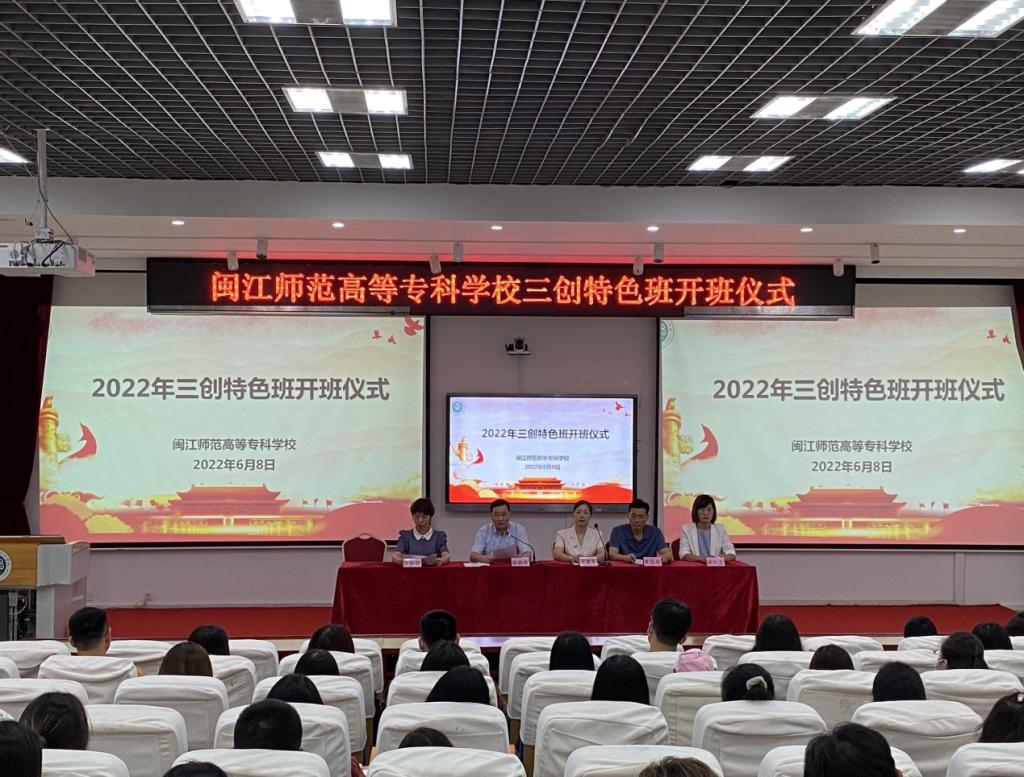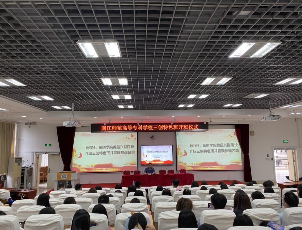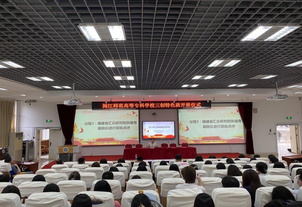 谢敏峰副校长、福建省汇众创新创业研究院张建青副院长、学生处郭静静处长、三创学院黄昌兴副院长、各学院学生工作负责人出席,入选三创特色班的项目团队成员及指导教师共计100多人参加此次活动。