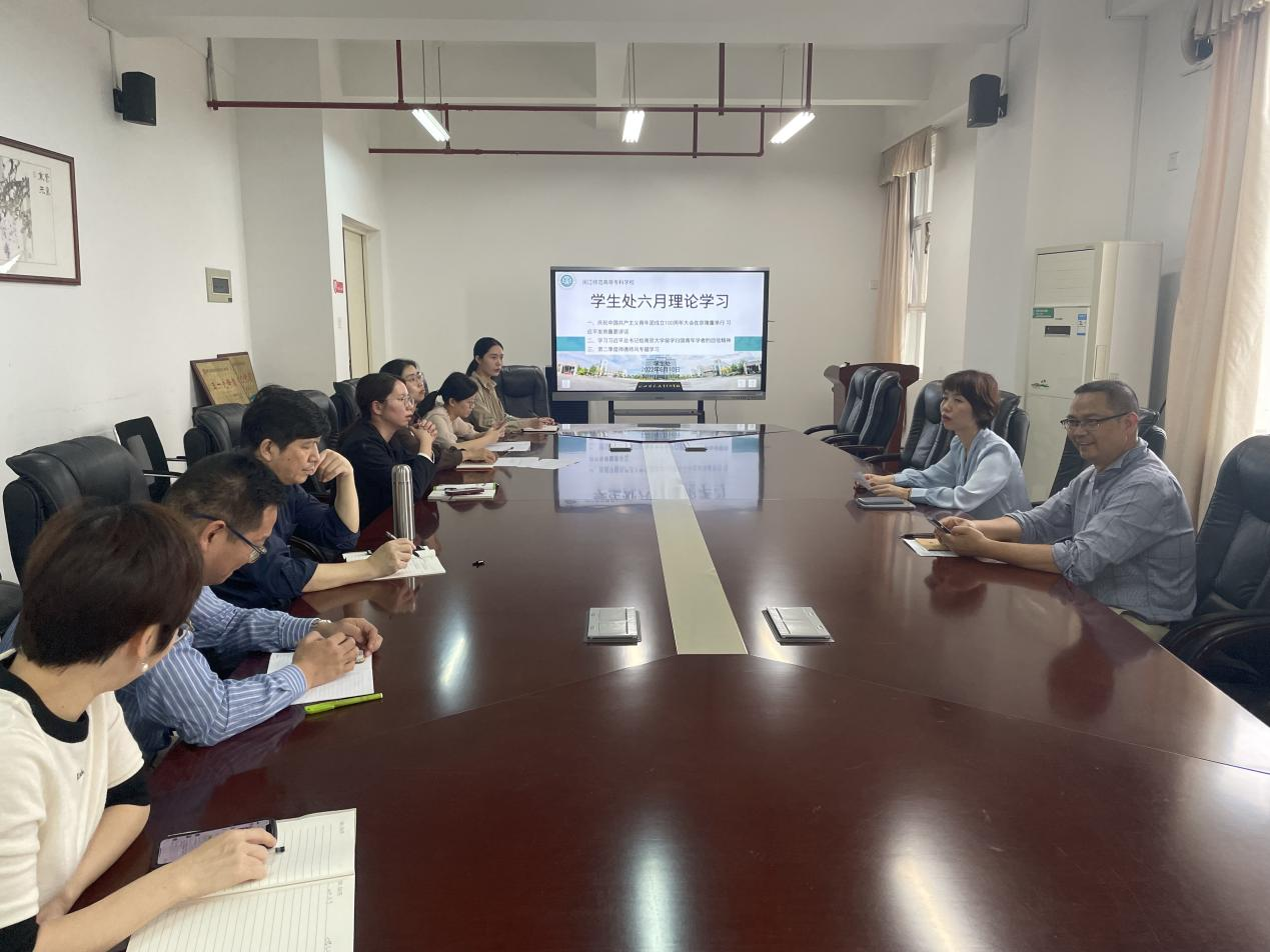 6月9日,大赢家体育app下载学生处全体职工于综合楼会议室集中学习中国共产主义青年团成立100周年大会上习近平发表的重要讲话、习近平总书记给南京大学留学归国青年学者的回信精神、第二季度师德师风专题学习教育部公开曝光第九批7起违反教师职业行为十项准则和纪检监察机关紧盯端午节点通报典型案例。