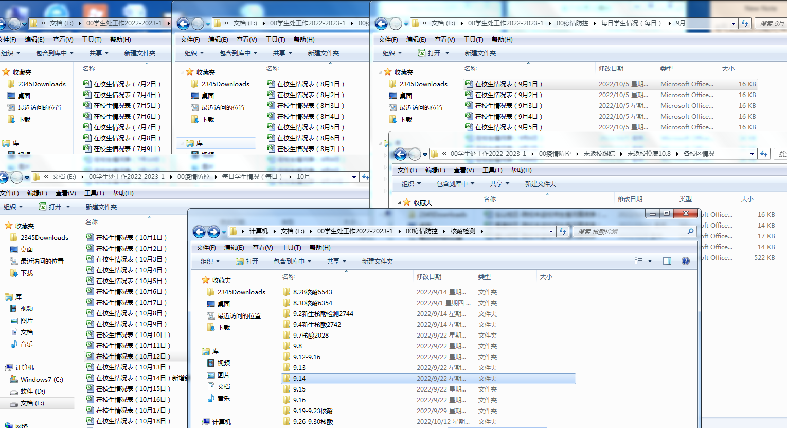 学生处党支部积极响应号召,有序组织、快速反应、积极摸排,从严、从细、从实各方面做好学校疫情防控工作。坚持以生为本,做好信息摸排方面,密切关注学校疫情防控工作安排和部署,及时摸排有中、高风险地区旅居史学生信息,精确掌握学生每日动态,悉心关注学生健康状况,第一时间统计有涉及地区和人员接触史学生,汇总健康码红黄码学生信息,实行实时报告制度,为精准防疫提供数据支撑。更新了《两案九制》中与学生相关的规章制度。加强数据督查,通过学生工作信息群逐一与学院对接,及时发现问题。截止目前,核酸统计与核对达32 万人次。组织了近10场学生工作视频及线下部署会议,有力配合校园疫情防控期间学生教育管理。