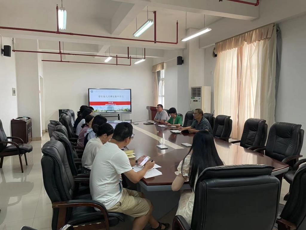9月27日下午,大赢家体育app下载学生处全体教职工在综合楼七楼会议室开展理论学习会以及中秋、国庆节前廉洁自律提醒谈话会,会议由郭静静处长主持。本次围绕网络安全宣传周专题、习近平总书记回信复信精神、第三季度师德师风专题以及“知规知纪知法 筑牢廉洁防线”主题展开学习。