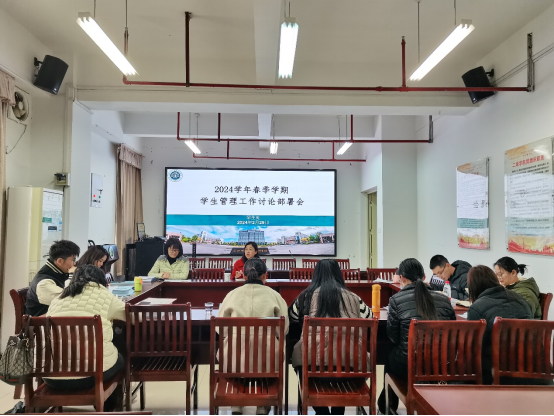 为扎实推动新学期学生管理工作高质量发展,确保各项学生教育管理工作有序、高效进行,2月29日,学生处在旗山校区8楼党员活动室开展2024年春季学期学生管理工作研讨会。学生处副处长杨威涛、学生处黄玮、冯祥芳以及各学院自律会负责老师参加本次会议。