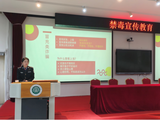 警校双方共同在校园和教室开展了禁毒、普法宣传系列活动。从什么是毒品入手,使学生了解吸食毒品的危害,增强毒品防范意识。同时开展了反诈普法教育,给学生讲解多种多样的诈骗方式,通过真实案例展示及讲解,普及防诈知识。在现场展区,闽江所(戒毒医院)民警们还设立了禁毒区、无烟区、普法区、健康义诊区和安全教育区等五个宣传展示区,通过摆放禁毒知识展板、仿真毒品展示和分发宣传手册等方式让师生进一步了解毒品的种类、危害以及防范艾滋病的相关知识。