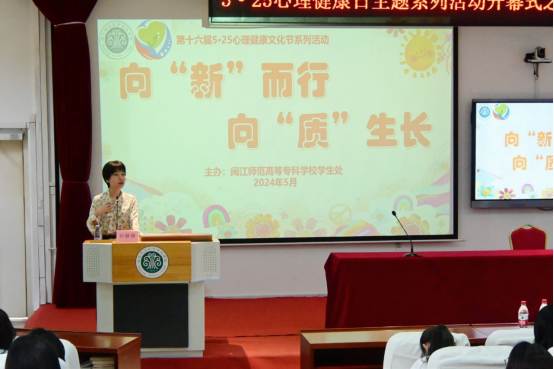 为迎接5·25全国大学生心理健康日,培养学生自尊自信、理性平和、积极向上的健康心态,一场以“向‘新’而行,向‘质’生长”为主题的开幕活动于2024 年5 月 16 日在闽江师专校内开展。本次活动作为整个心理健康日主题系列活动的起点,旨在让同学们正确认识自我、珍爱自我,体验生活的美好与浪漫,培养积极健康的心态,收获自我成长。