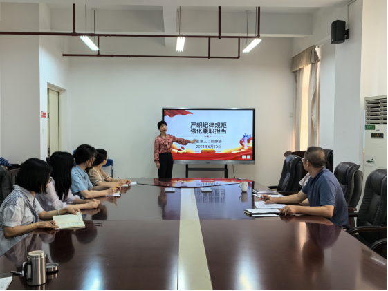 为深入学习贯彻习近平总书记关于开展党纪学习教育的重要讲话和指示精神,推动党纪学习教育走深走实,6月19日上午,学生处党支部书记郭静静为支部党员讲授以“严明纪律规矩 强化履职担当”为主题的专题党课。