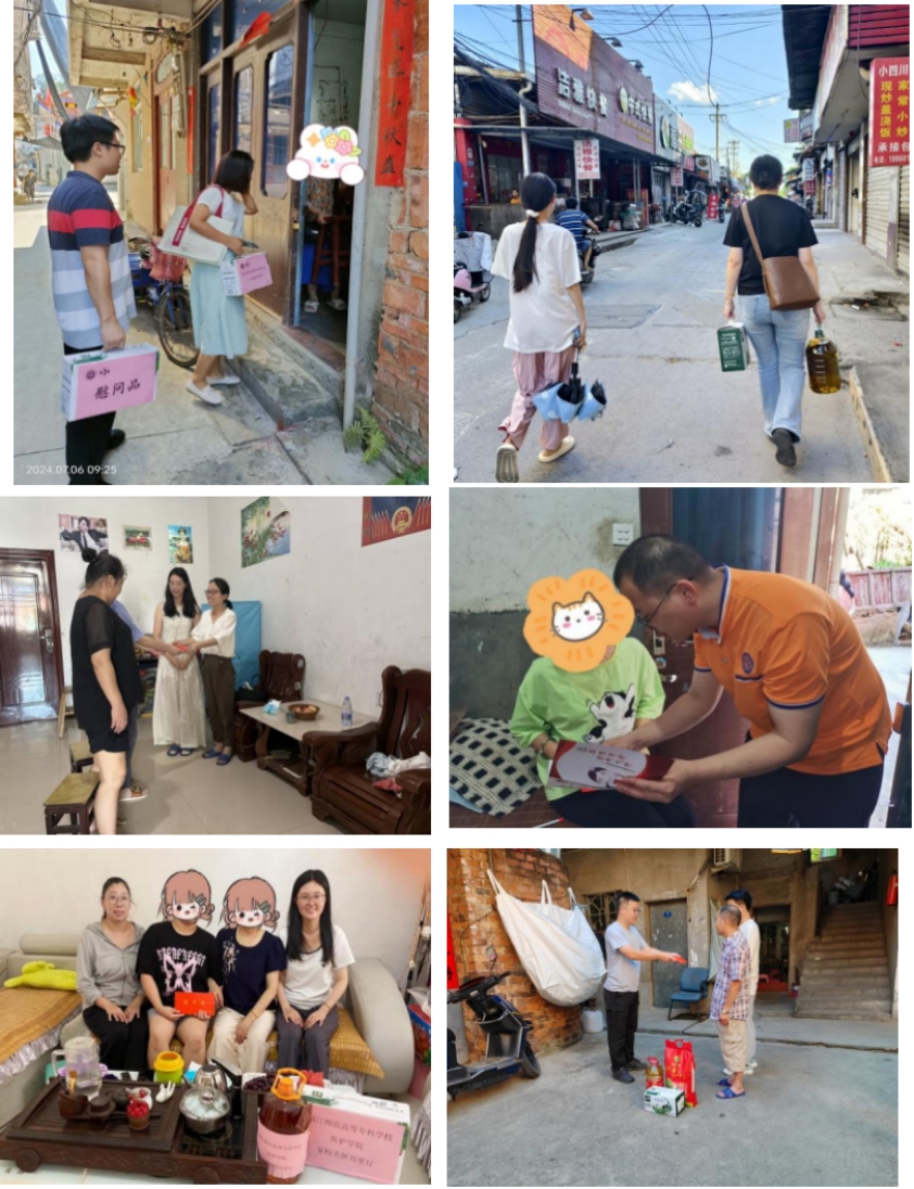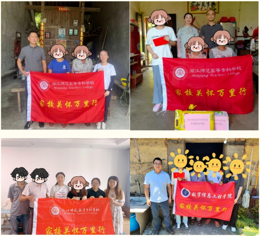 暑假期间,学生处、各学院组成九支家访小组,顶着酷暑,赴我省9市27地,实地走访慰问困难学生家庭。在家访过程中,老师们通过细致的关怀和真诚的交流,向家长了解学生家庭经济情况、成长环境及在家的思想状况及表现。在充满温情与理解的氛围中,老师们不仅送去了生活必需品和慰问金,更传递了学校对家庭经济困难学生家庭的深切关怀与美好期望。
