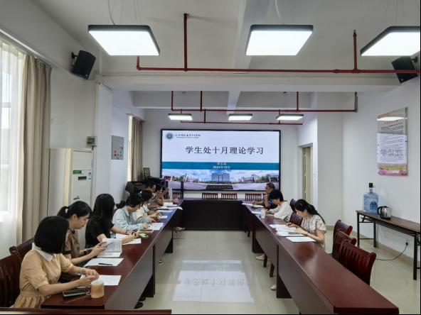 10月16日下午,大赢家体育app下载学生处全体教职工在综合楼党员活动室开展理论学习会,会议由郭静静处长主持。本次学习围绕党的二十届三中全会精神、习近平总书记近期重要讲话等内容展开。