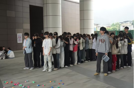 “蒙眼贪吃蛇” 环节无疑是对团队沟通与信任的一场大考验。各组成员蒙上双眼,小心翼翼地在队友的言语指引下缓缓前行,朝着目标努力完成任务。活动中,大家相互鼓励、默契配合,即便偶尔遇到困难,也始终保持着积极乐观的态度。在紧张又有趣的氛围里,学生干部都深刻体会到信任与协作在团队中的重要性,团队凝聚力也在这一过程中悄然提升。