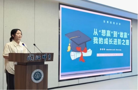 小学教育学院23级小学语文教育2班的陈慧瑜同学以“从‘想赢’到‘敢赢’——我的成长进阶之路”为主题,聚焦福建省职业院校技能大赛小学教育赛项,传递备赛与参赛智慧。她激励同学们在成长的赛道上,要坚定地锚定每一个目标,积极进取,不轻视一次打磨,不放弃一回突破,成为逐光而行的追梦者,书写属于自己的热烈且闪耀的青春故事。陈慧瑜拆解赛前准备关键,细致梳理备赛路径。谈及临场发挥,她强调高效设计、精彩展示与心态管理的重要性,鼓励大家以“敢尝试、敢突破”的勇气拥抱挑战。