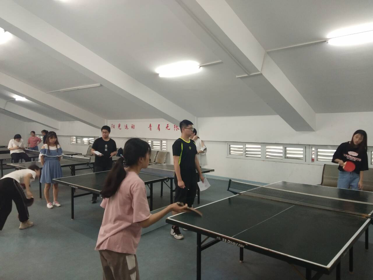 此次比赛分为两场,男单和女单分别进行决赛。比赛分为八组,两场,前一场一局定胜负,十六进八后胜者抽签进行下一轮比赛,三局定胜负,并在决赛中角逐前三甲。经过初赛的筛选,在决赛环节更是十分激烈,在他们手里,一颗小小的乒乓球有着无穷的魅力,在参赛选手球拍间辗转,在空中飞翔。女生们在赛场上手起手落,挥出的不仅仅是一颗小小的乒乓球,更是平时挥洒的汗水,更是让人深刻意识到巾帼不让须眉之理。大家目不转睛的盯着球,生怕错过精彩的比赛,让人大呼痛快。