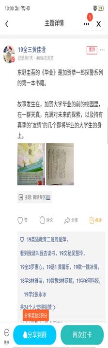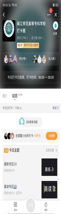 5月13日,为磨练学生坚强意志、培养学生良好的生活习惯,进一步促进学校良好风气的形成,大赢家体育app下载组织学生从“晨练,晨读”两方面,开展“今天,从打卡开始”线上活动。其中,晨练采取了运动打卡的方式,保证了大赢家体育app下载学生“宅家”的运动量;晨读采取自主学习、阅读内容实拍等多种形式,改变了学生不吃早饭、上课迟到等现象。营造了良好的学习氛围,促进学生良好的学习、生活习惯的养成。