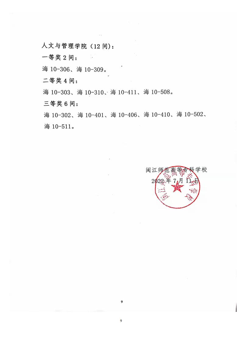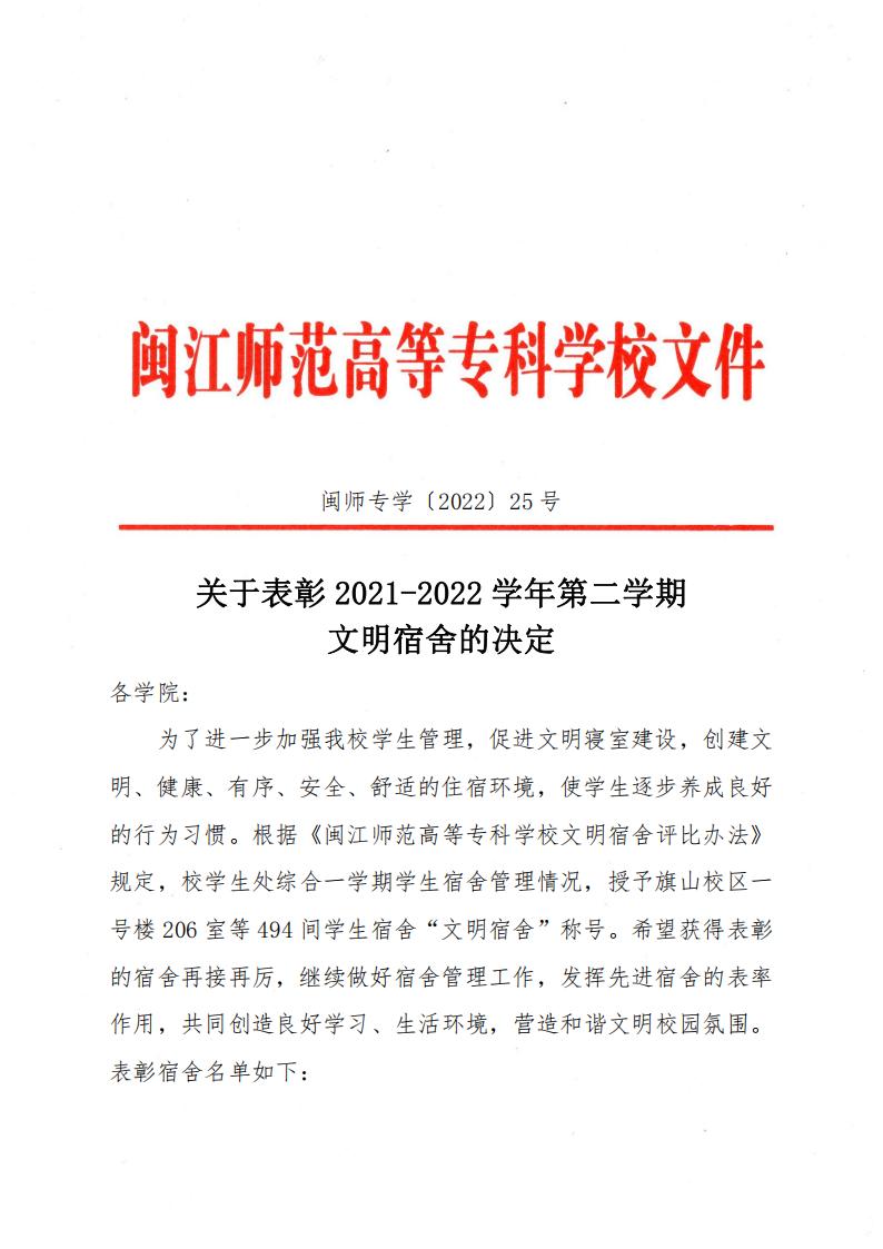 关于表彰2021-2022学年第二学期文明宿舍的决定