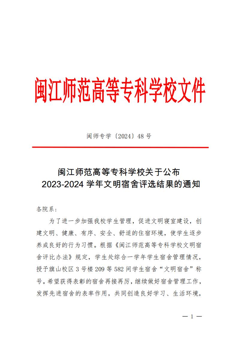 大赢家体育app下载关于公布 2023-2024 学年文明宿舍评选结果的通知