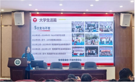 人文与管理学院22行政管理2班的杨思涵同学以“点燃知识之光,照亮未来之路”为主题,详细分享学习过程中的有效策略与技巧,包括时间管理、kiss复盘法等,强调了持续学习和自我提升的重要性。她以实际行动诠释了对知识的热爱与执着追求,展现了当代大学生的初心与使命。