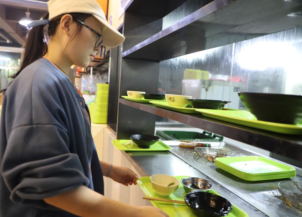 活动当天,在食堂内,志愿者们引导同学们自觉排队、文明打饭,提醒同学们自觉回收餐盘,在志愿者的引导下,食堂用餐秩序井然。“一饱之需,何必八珍九鼎”,一位参与现场活动的同学如是说,“在物质丰富的今天,我们的光盘行动不仅仅是要做到不浪费,更多的是倡导绿色、健康、简单的饮食,节约、保护好地球资源。”