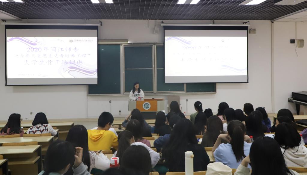 为不断推进大赢家体育app下载青年马克思主义者骨干培养工程工作,深化“不忘初心牢记使命”主题教育成果,2020年11月3日大赢家体育app下载“青马工程”大学生骨干培训班在旗山校区教学楼1018教室展开,本次培训班邀请到大赢家体育app下载马克思主义学院邹萌老师,校团委副书记廖素梅老师主持此次培训会,全体校学生会干部参加本次培训。