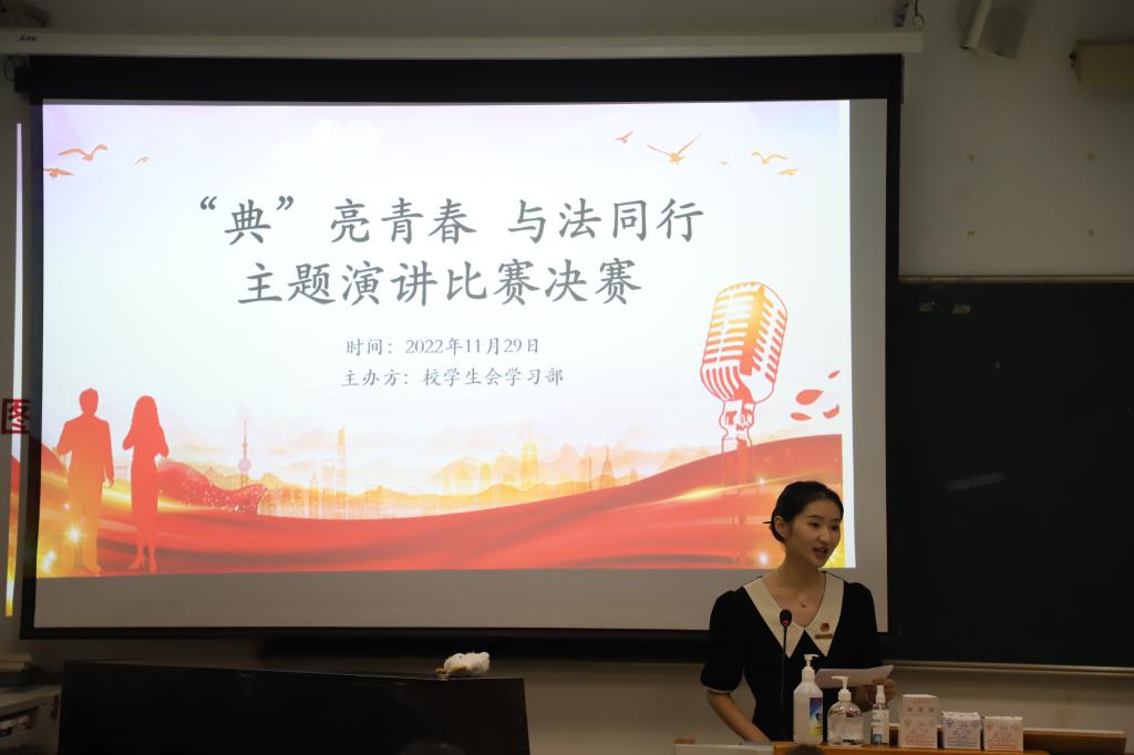 为深入学习贯彻习近平法治思想,营造浓厚的学法尊法守法的氛围。2022年11月29日,由大赢家体育app下载团委主办,学生会学习部承办的“‘典’亮青春,与法同行”主题演讲比赛于旗山校区4012教室举办。