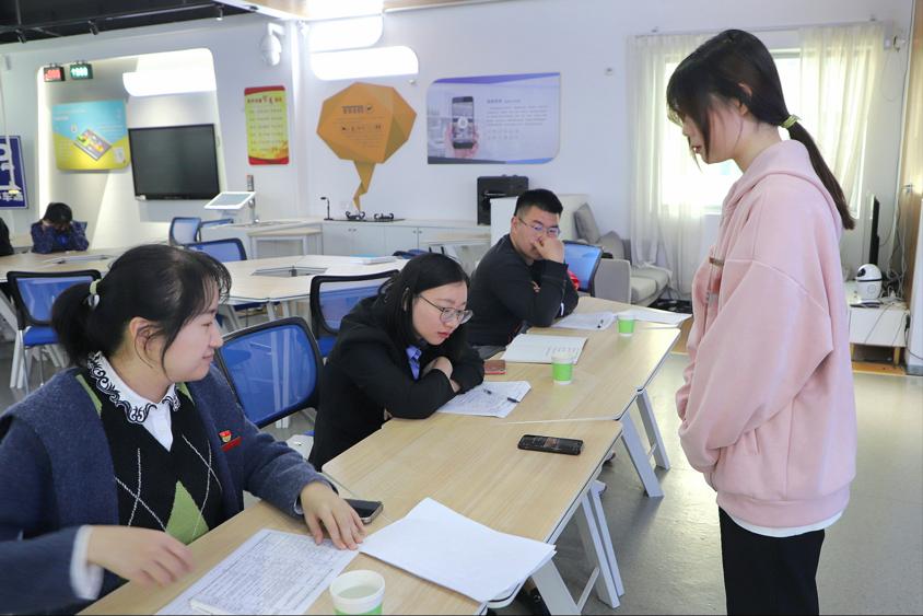 候场室里,紧张的气氛蔓延教室的每一个角落,但这并不影响同学们的状态,他们自信满满、落落大方,这正体现出了中国青年有一分热、发一分光的奋斗精神。