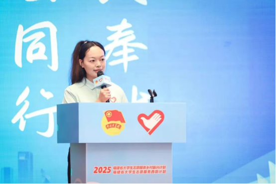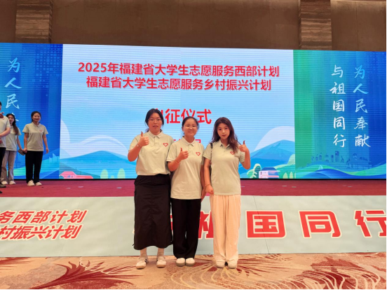 连同黄露葳同学,人文与管理学院2019级社会工作专业毕业生祝菁、2022级社会工作专业毕业生谢宇鑫、2022级心理健康教育专业毕业生李铭雅共4位同学入选福建省大学生志愿服务乡村振兴计划并作为志愿者代表参加了此次出征仪式。四位毕业生纷纷表示要将培训所学转化为扎根基层、服务人民的实际行动,书写“到西部去,到基层去,到祖国和人民最需要的地方去”的青春篇章。