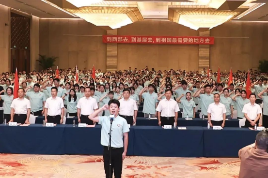 7月18日,2025年福建省大学生志愿服务西部计划、福建省大学生志愿服务乡村振兴计划志愿者出征仪式在福州举行。团福建省委书记李腾出席活动并讲话,2025年新招募乡村振兴计划志愿者和西部计划志愿者代表等600余人参加出征仪式。
