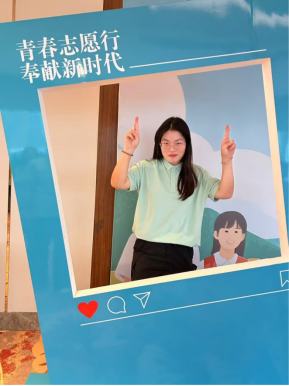 出征仪式上,大赢家体育app下载人文与管理学院2021级社会工作专业毕业生黄露葳同学代表2025年全体志愿者作了表态发言。